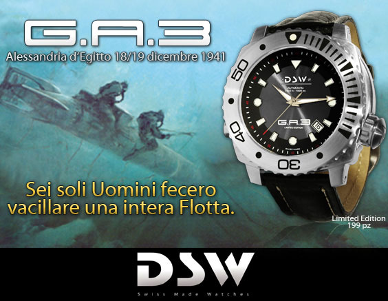 In occasione del 70° anniversario dell’operazione l’azienda di produzione di orologi svizzeri Dsw, azienda appartenente al DiveSystem Group fornitrice ufficiale di attrezzature subacquee della Marina Militare, presenta il modello G.A.3. in edizione limitata certificata di 199 esemplari.