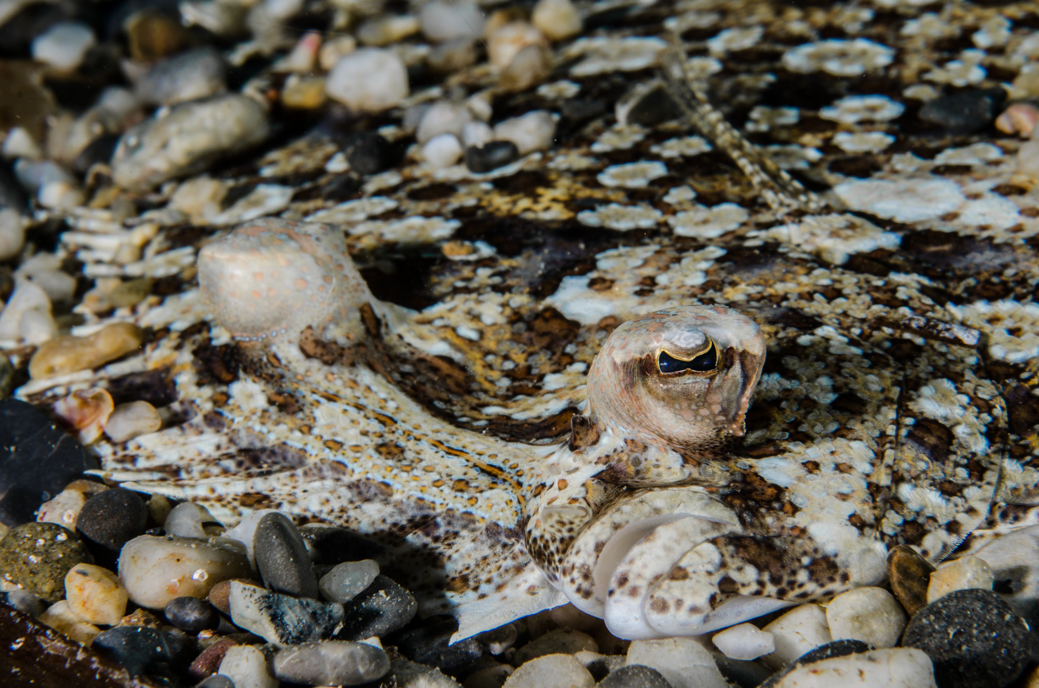 In effetti ad uno sguardo sbrigativo le distese sabbiose sembrano dei deserti privi di vita, ma basta un po’ di pazienza per accorgersi che non è così. Certo, a causa dell’assenza di ripari, le piane sabbiose rappresentano un ambiente inospitale per la maggior parte degli organismi, ma proprio questa difficoltà ha plasmato forme, adattamenti e stili di vita assolutamente unici. In un luogo senza rifugi, infatti, gli animali si sono dovuti adattare a vivere totalmente o parzialmente al di sotto del sedimento, o a dissimulare il più possibile la propria presenza nell’ambiente, raggiungendo gradi di camuffamento incredibili. Per questo, se a prima vista le piane sabbiose ci sembrano deserte, dobbiamo rallentare il ritmo della pinneggiata, guardare il fondale con più attenzione, e saremo ripagati da incontri eccezionali: ad esempio, potremmo trovare pesci piatti, come i simpatici rombi di rena o le grandi sogliole, oppure tracine semisepolte sotto la sabbia, o curiose gallinelle che quasi camminano sul fondo con i raggi liberi delle ampie pinne pettorali. Solo con molta fortuna si possono osservare le espressioni un po’ inquietanti dei timidi pesci serpente, appena sporgenti dal fondale, o diverse specie di razze e torpedini, lungo le coste italiane certamente rare. Incontreremmo poi numerosi crostacei, come paguri o coppie di granchi portunidi, di colore grigio e con l’ultimo paio di zampe trasformato in palette, che permette loro di nuotare per brevi tratti. Certamente vedremmo molluschi tipici di sabbia, come turritelle o murici spinosi, e solo prestando attenzione noteremmo i piccoli sifoni delle vongole e di altri bivalvi sepolti nel sedimento. Qua e là troveremmo le grosse oloturie che pacifiche ingeriscono grandi quantità di sabbia, o i pennacchi colorati di qualche verme tubicolo; altri vermi, completamente sepolti, mostreranno la loro presenza solo tramite coni di sabbia simili a vulcani o cumuli di pseudofeci. Anche le stelle marine, per quanto prevalentemente di fondo duro, hanno rappresentanti in ambiente sabbioso,