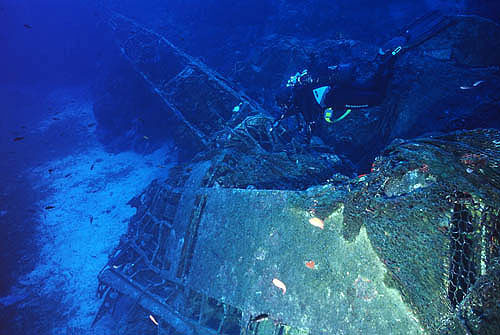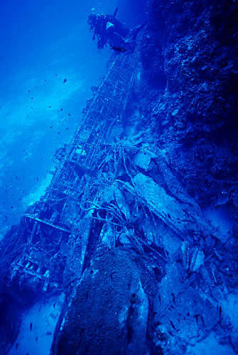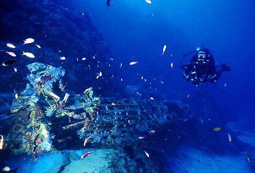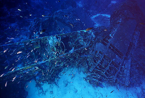 Il relitto fotograficamente parlando è molto interessante, sia per il colore delle concrezioni che per l’andamento verticale dei tubi, il tutto condito da una visibilità eccezionale.
