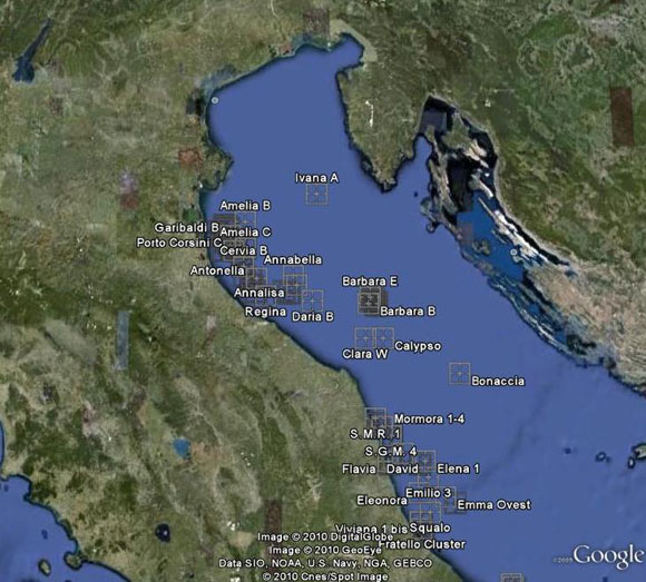 Di piattaforme offshore ce ne sono più di 20 tra Comacchio e Rimini e oltre 80