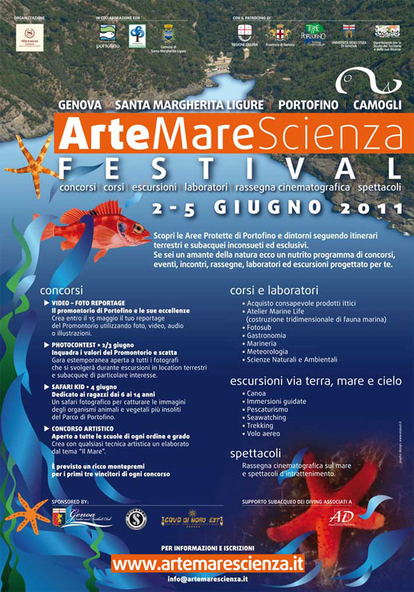Il monte di Portofino con la sua Area Marina Protetta ed il suo Parco terrestre sarà il protagonista, dal 2 al 5 giugno 2011, di Arte Mare Scienza Festival: quattro giorni di eventi, concorsi, laboratori ed escursioni dedicati agli amanti della natura e del mare.