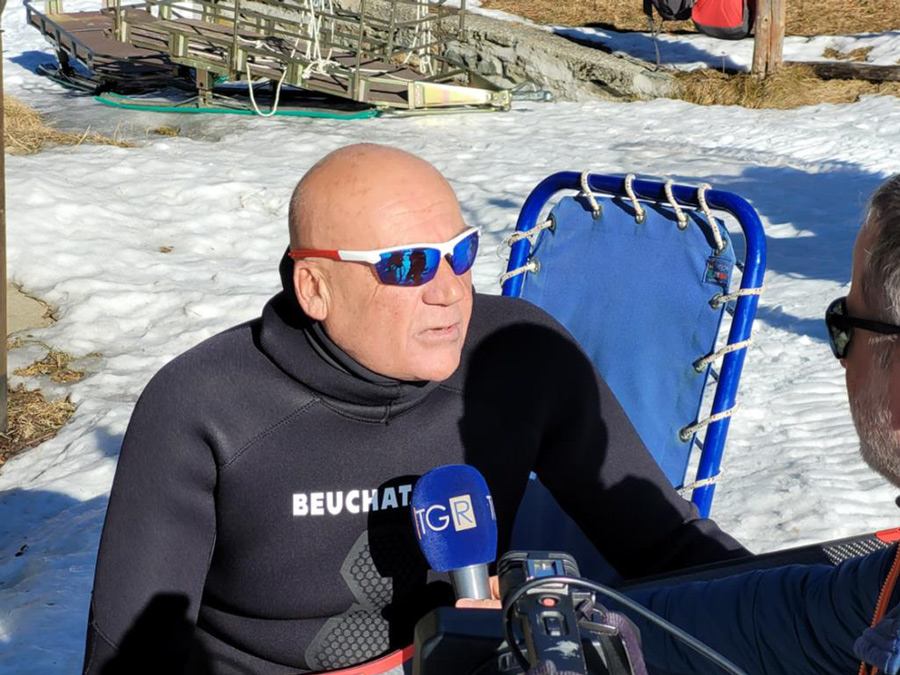 Presso il campo base organizzato da Futura Sub Dive Team con FIAS Ivrea a 2.019 metri di altitudine, sotto il ghiaccio, spesso quasi mezzo metro, del Lago di Lod a Chamois in Valle D’Aosta, Fausto Firreri, utilizzando attrezzatura subacquea Beuchat, azienda francese produttrice, con sede a Marsiglia, ha percorso in apnea 30 metri, segnando il nuovo record mondiale paralimpico di apnea lineare estrema sotto il ghiaccio.