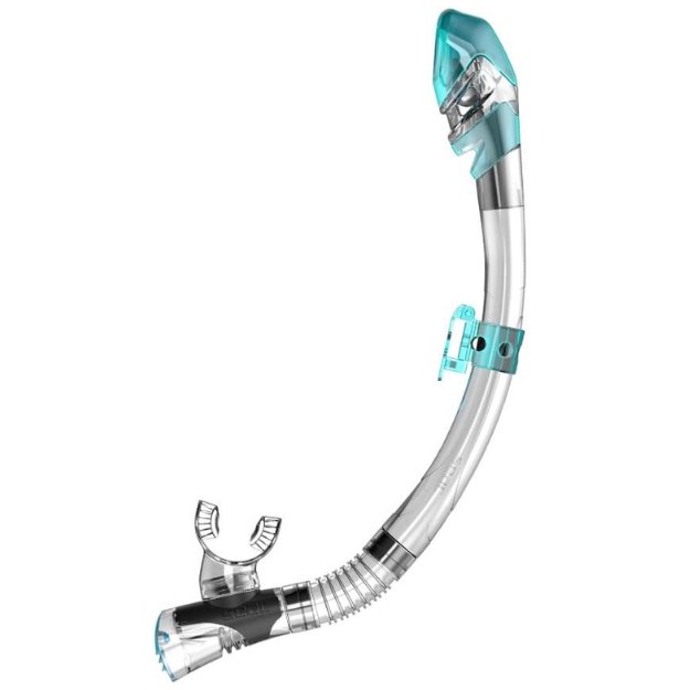 Lo snorkel può avere una valvola di spurgo che aiuta vuotarlo se entra acqua. Se non la ha, basta soffiare nel tubo.