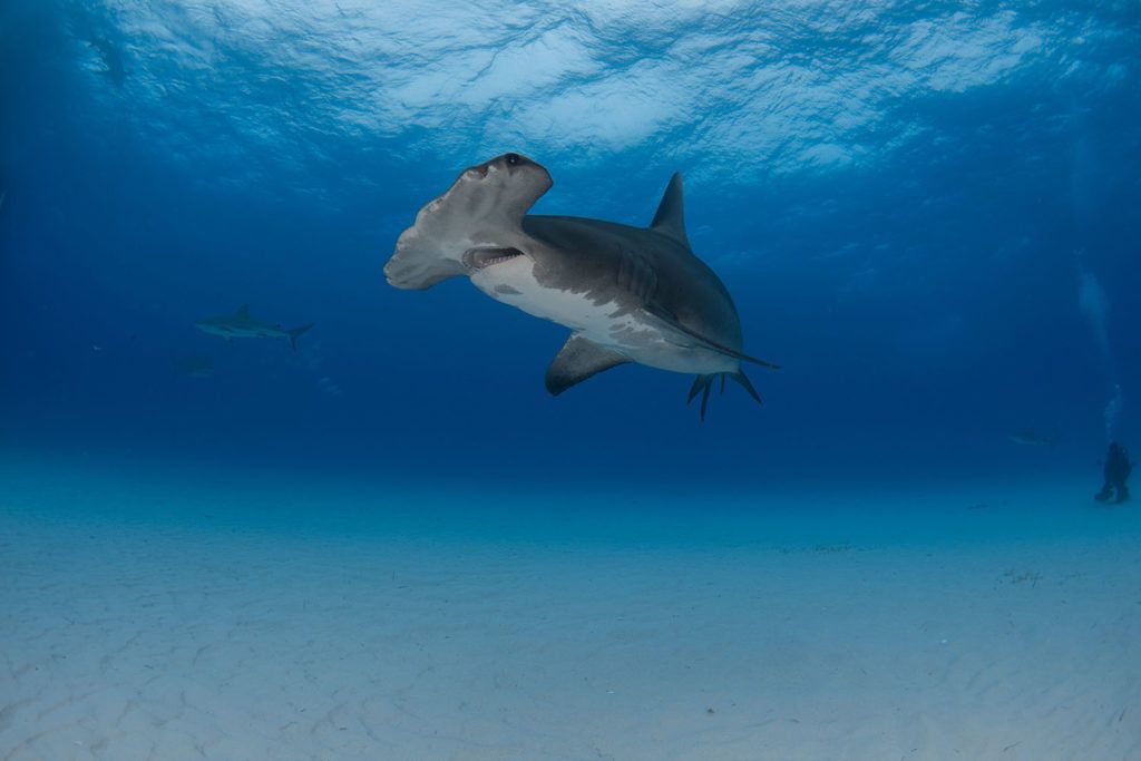 A Bimini si incontra lo squalo martello maggiore che è una delle specie più affascinanti e dalle dimensioni imponenti. Il suo muso e la sua pinna dorsale falcata lo rendono inconfondibile anche agli occhi dei meno esperti. Sono poche le zone del mondo in cui lo si può incontrare, ma Bimini è una di quelle.