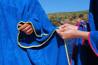 Il Beach Poncho di Scubart è perfetto per cambiarsi in ogni situazione, ma è anche un accogliente accappatoio ed un telo-mare "king size".