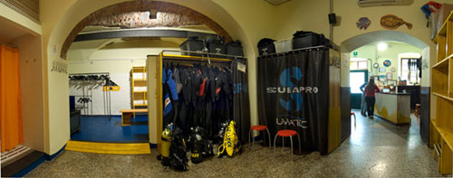 I nuovi locali, molto accoglienti e funzionali, mettono a disposizione 100 mq per docce, servizi, vasche per risciacquare il materiale, attrezzature per il noleggio e grandi spogliatoi dove prepararsi con tutta calma prima dell’immersione.