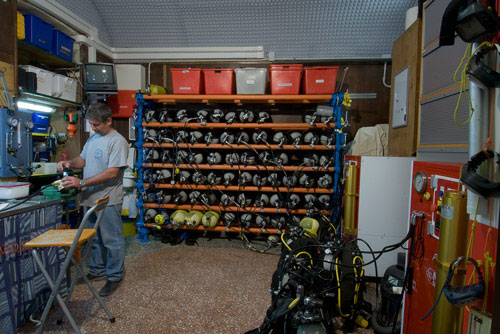 Il centro ricarica, è inoltre dotato di centralina di miscelazione nitrox, mentre il laboratorio riparazioni, curato direttamente da Roberto, effettua revisioni sulle attrezzature che si possono lasciare al diving a fine immersione, per poi essere ritirate, una volta controllate, il weekend successivo.