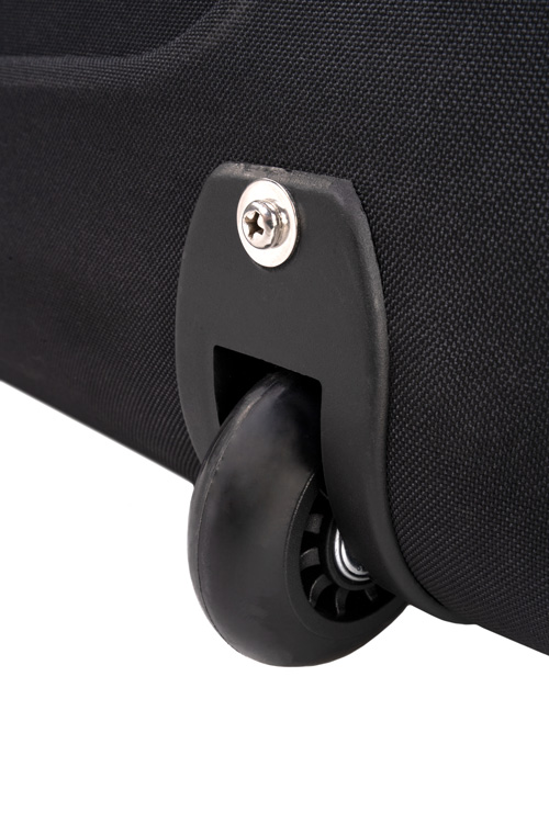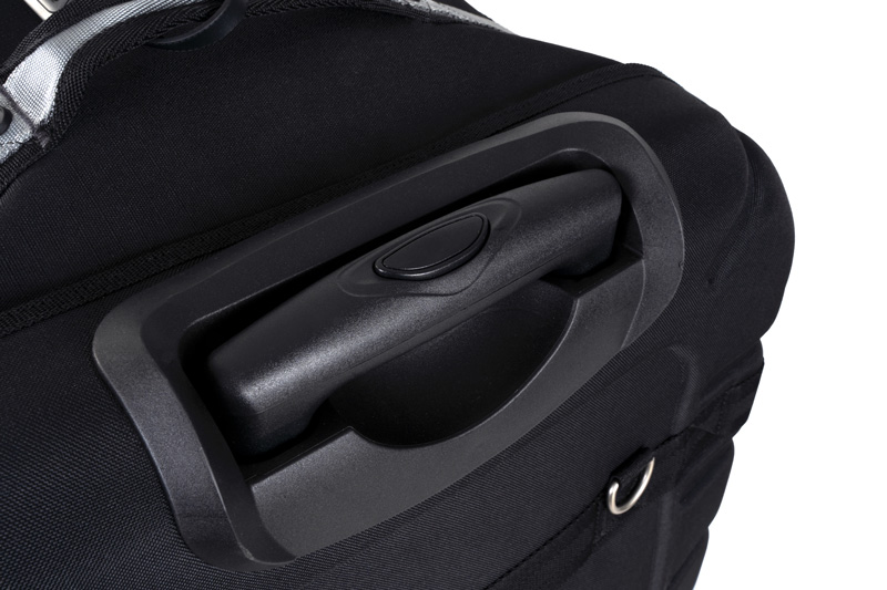 - Borsa a doppio scomparto con ruote, realizzata in nylon/PVC 600 denari e 1000 denari, con manico telescopico regolabile in altezza.