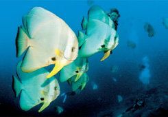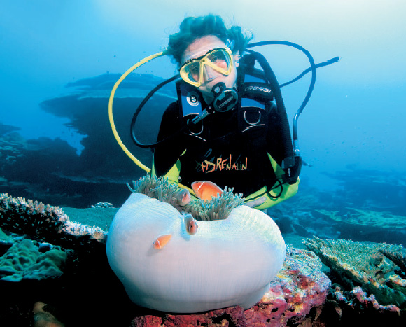 Tra i numerosi punti d’immersione Eden e Garden of Eden sono tra le più entusiasmanti, un grande pianoro ricoperto di gorgonie degrada dolcemente nel blu fino a 35 mt da dove risalgono branchi di Jack Fish, Rainbow Runners, solitari pesci napoleone, squali grigi e Whaoo di notevoli dimensioni. Gerhard’s Cannons è un pianoro sabbioso a 12 mt dove, tra le Garden Eels giacciono i resti di alcuni cannoni del 18° secolo ma soprattutto dove si può fare l’emozionante incontro con Kat un solitario e timido dugongo. Tra le due immersioni giornaliere si approda sulle bianche spiagge di Prison Island o Direction Island dove si trova The Rip il punto più famoso per fare snorkeling. Durante gli spostamenti in barca all’ interno della laguna è facile incontrare i delfini e se si è fortunati è possibile fare snorkeling con loro.