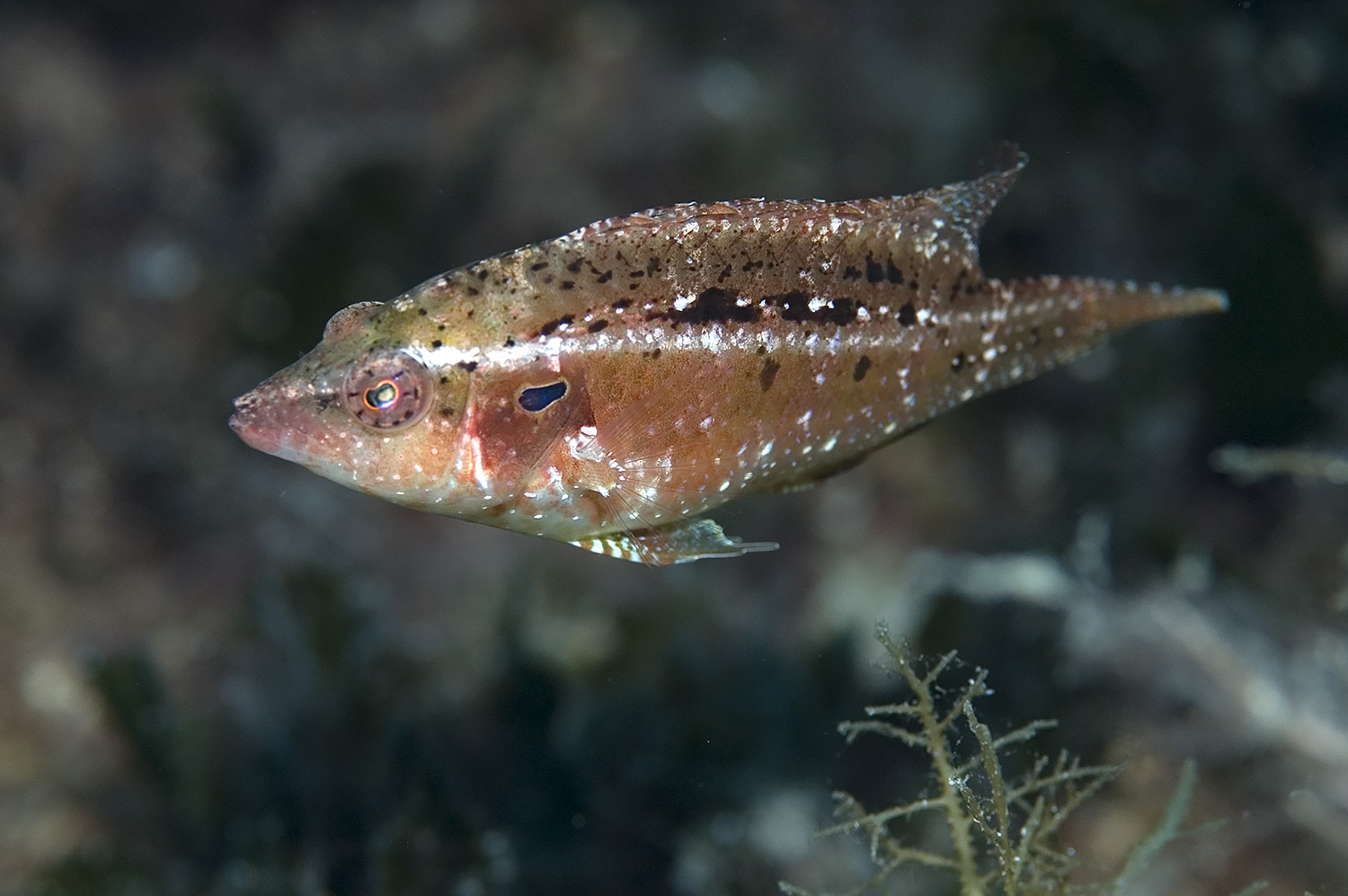 Labride piuttosto timido, si nasconde tra le alghe, bisogna stare fermi per vederlo uscire dal nascondiglio. È diventato molto comune nelle acque di Rodi, dove ha evidentemente trovato il suo microclima ideale. Non è ancora stato segnalato in Italia, perciò… occhi aperti, e indirizzate eventuali segnalazioni scrivendole nei commenti.