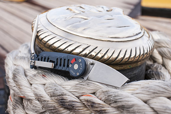 scioglinodi o caviglia è ideato con una lunghezza di 70mm per lo scioglimento di nodi di canapi o corde di grandezza superiore. Posizionato sul codolo della manicatura , una volta aperto è reso stabile e fisso tramite un meccanismo in acciaio facile da azionare e collocato all’interno della guancetta in modo che non venga percepito al tatto durante la normale impugnatura del coltello.