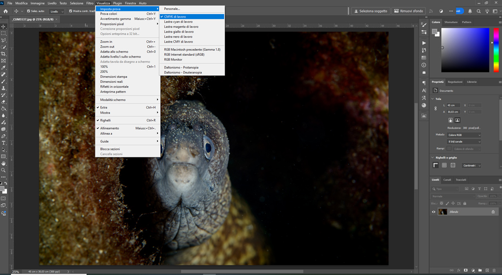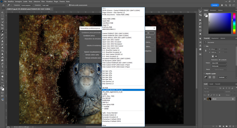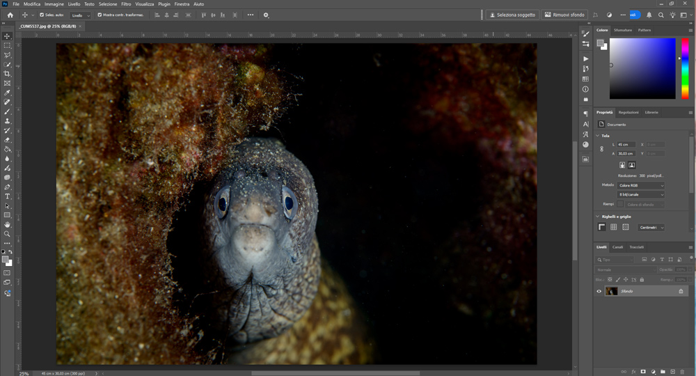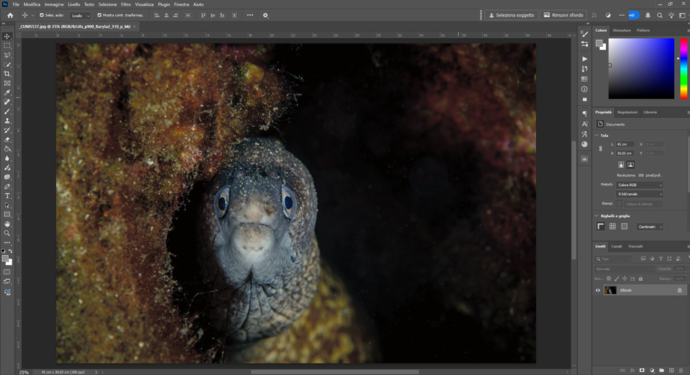 - Apro la foto in Photoshop con spazio colore Adobe RGB.