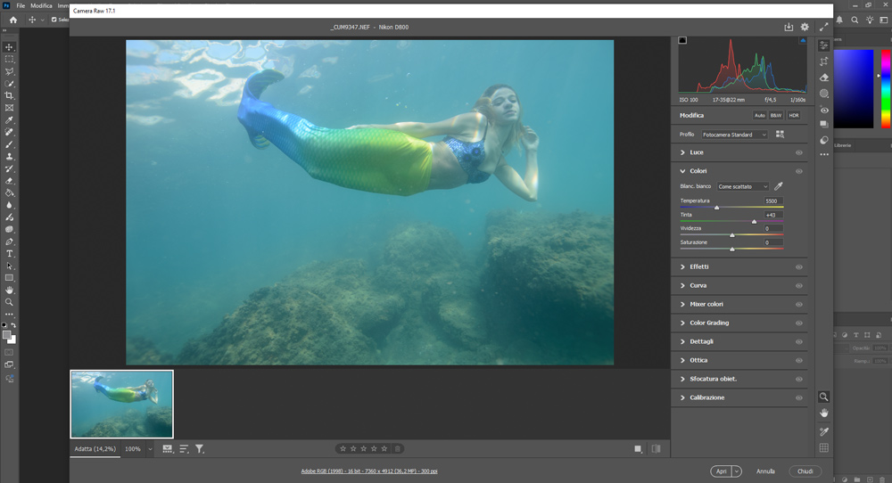 - Apro il file RAW in Camera Raw.