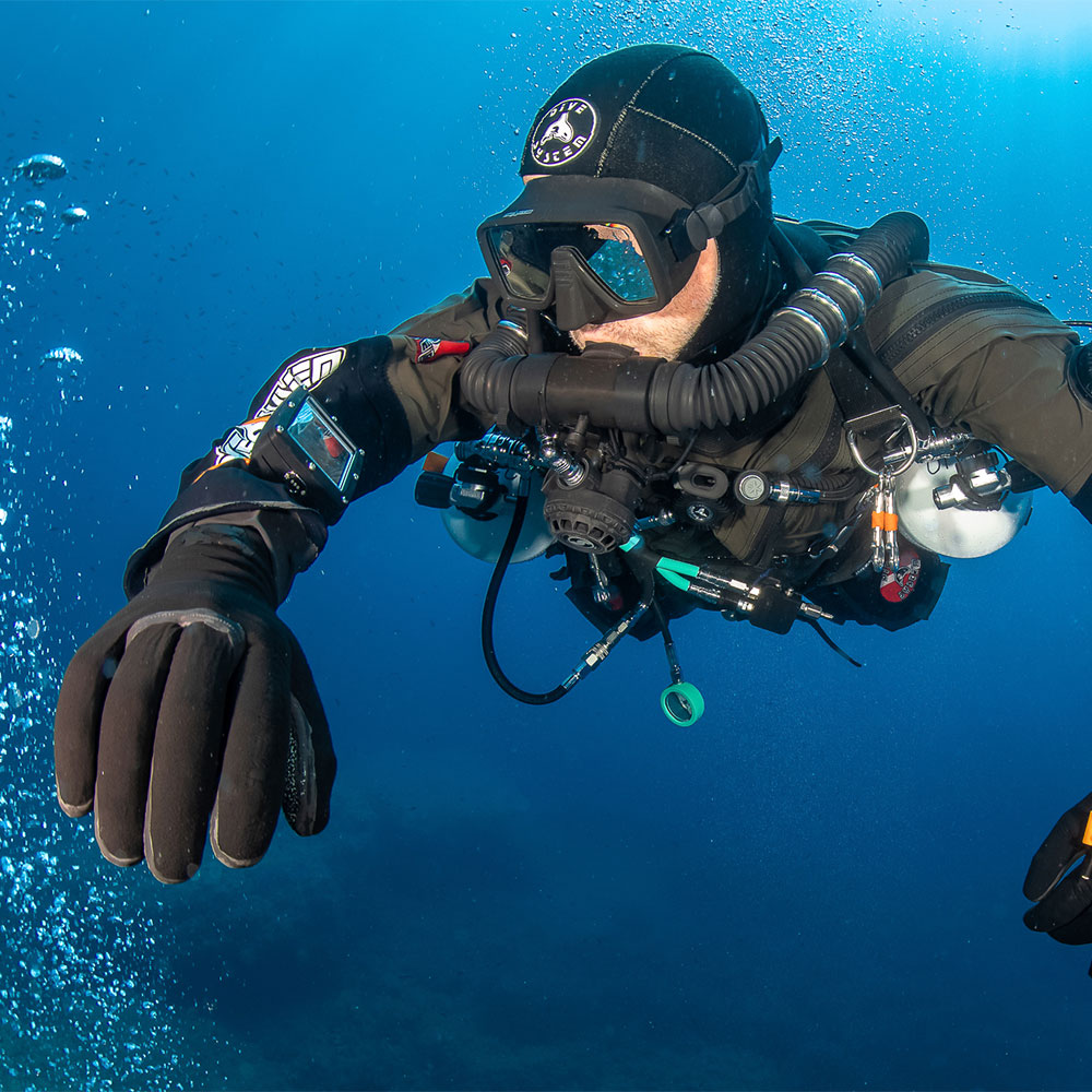 Questo modello avanzato offre funzionalità all’avanguardia come le modalità Sidemount e CCR, ed è dotato di un analizzatore di ossigeno e un tappetino di ricarica a induzione.