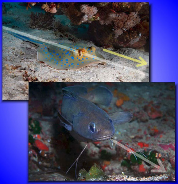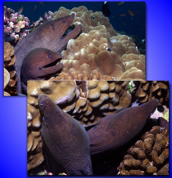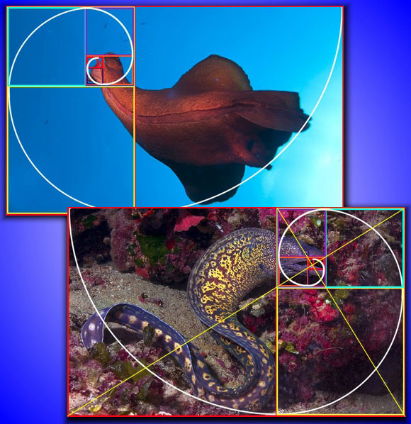 Le murene inquadrate in modo classico, con la regola dei terzi, e in una maniera originale (due diagonali che si intersecano).