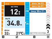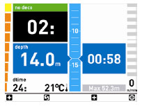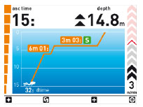 Ma c’è molto di più. Il display a colori sorprende grazie alla sua versatilità durante i vari cicli di un’immersione: oltre alla classica navigazione in modalità “Extend”, ICON HD può essere commutato in tempo reale sulla modalità “Profilo”, in ogni momento dell’immersione. L’utilizzatore si ritrova così all’interno di un diagramma che riproduce profondità e tempo. Un vantaggio determinante rispetto alle visualizzazioni “classiche”: tutte le operazioni, come ad esempio le pause di decompressione, sono oggetto di una chiara visualizzazione grafica, naturalmente a colori, integrando così i dati digitali in una forma intuitiva.