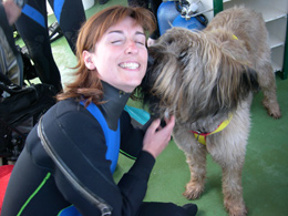 Dopo aver fatto il giro dei 3 diving di Porto, abbiamo scelto Generation Bleue, per simpatia e cordialità… non ultimo perché Pascal, proprietario del diving, aveva un pelosone proprio come il nostro 😉
