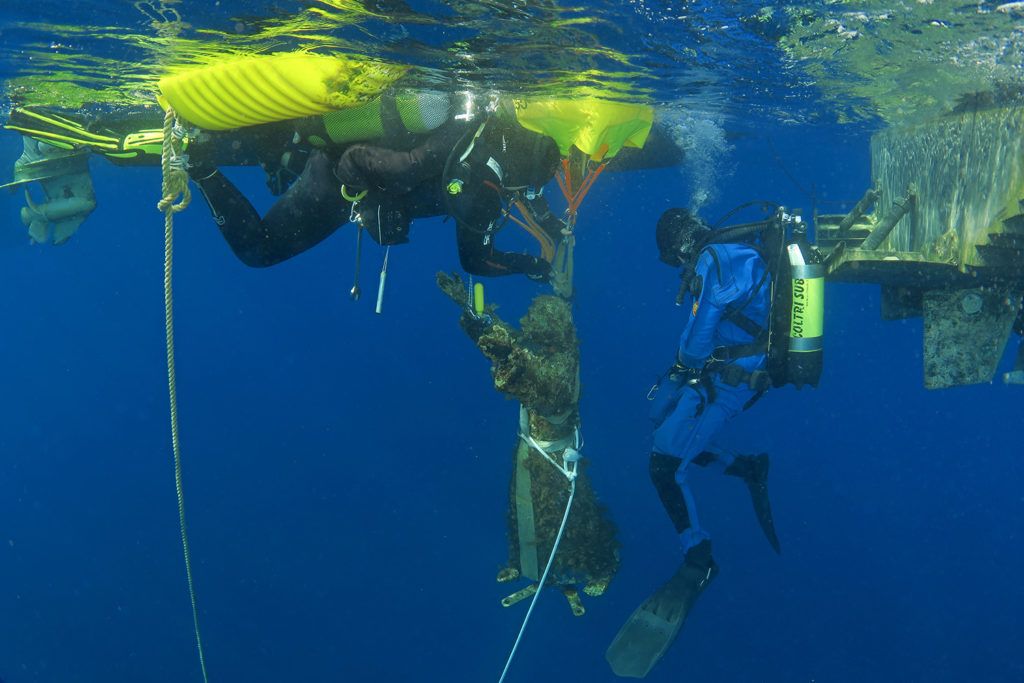 L’operazione, che si è resa necessaria per restaurare la scultura e liberarla dalle concrezioni marine che rischiavano di deteriorarla, è stata compiuta dagli stessi sub che 25 anni fa ne idearono la realizzazione e proposero di inabissarla per creare un punto subacqueo di attrazione.