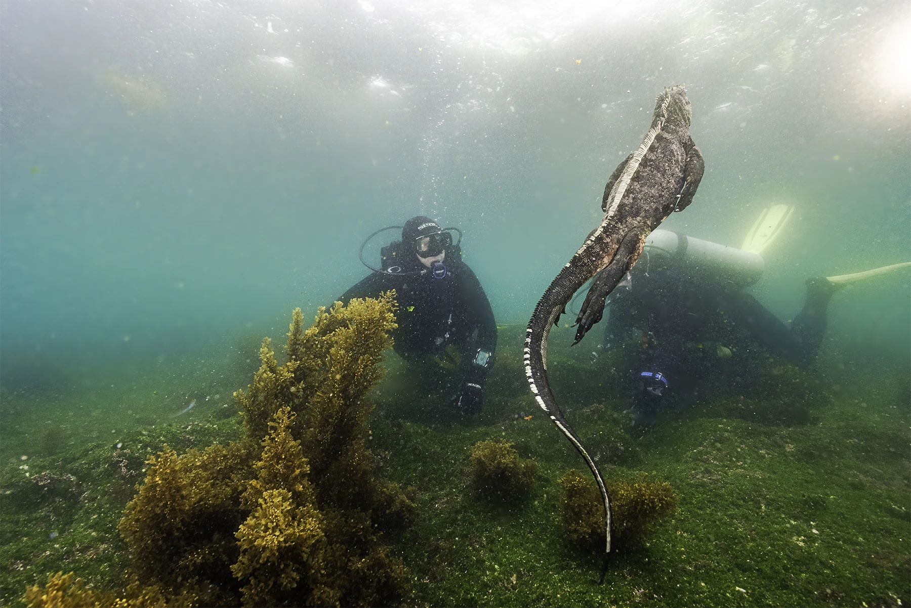 In questo scenario sorprendente, specie provenienti da ambienti opposti convivono nello stesso habitat: è qui che l’unica iguana marina esistente e il pinguino più settentrionale del pianeta condividono le acque con foche e barriere coralline. La particolarità dei fondali permette inoltre di osservare grandi specie pelagiche, come squali martello e razze, a brevissima distanza dalla riva. Grazie a una geologia complessa e a una varietà di habitat che spazia dalle mangrovie alle scogliere verticali, le Galapagos rimangono un sito di diversità biologica senza eguali in tutto il Pacifico.