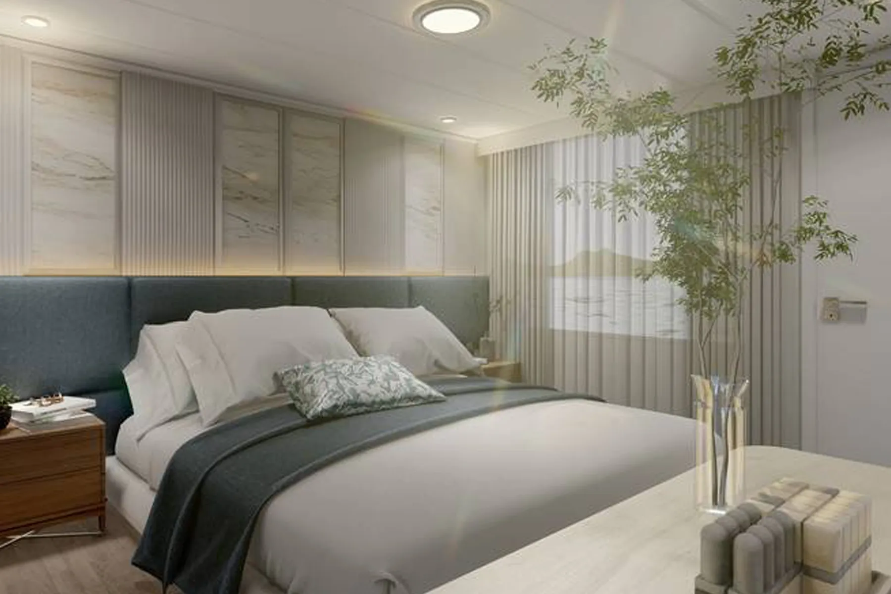 Gli spazi comuni sono pensati per il relax e la convivialità. Gli alloggi riflettono la stessa cura nei dettagli, con cabine doppie o matrimoniali distribuite su tre ponti. Tutte dispongono di ampie finestre panoramiche, bagni privati con finiture di pregio e prodotti di cortesia ecologici, offrendo un rifugio accogliente e luminoso dopo una giornata di esplorazione.