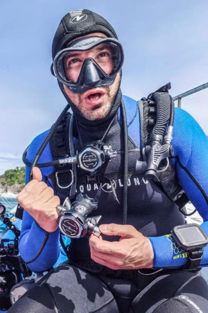 Nato a La Spezia nel 1975, questo istruttore e fotografo subacqueo freelance ha trasformato una profonda passione per i viaggi in una carriera internazionale d’eccellenza. In oltre dieci anni di attività e 1500 immersioni, ha documentato i fondali più iconici del mondo — dall’Indonesia al Mar Rosso, fino al Messico — mantenendo un legame costante con le acque della Liguria e della Toscana.