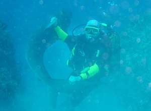 Proseguiamo, ormai sono passati già 50 min. e siamo ad 8 m, Boris mi chiede se vogliamo finire l’immersione ed io annuisco, sembra non ci sia più niente da vedere…si fa per dire, ma in lontananza intravedo qualcosa di verde muoversi, mi avvicino ed è una murena per altro già incontrata in precedenti immersioni.