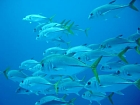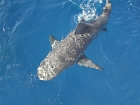 Appena entrati in acqua conto subito 8 squali, lunghi tra 1 e 2 metri, l’incontro ravvicinato con lo squalo è sempre un’esperienza emozionante. Appena il nostro gruppo é in acqua, andiamo subito giù e raggiungiamo i 30 m dove il fondale e costituito da rocce con spaccature, qui la nostra guida Juada Alberto nasconde sotto una roccia un sacco pieno di pesce (barracuda) e da lì a poco dal nulla arrivano i signori del luogo né conto un ventina, ce ne sono alcuni tra i 2 e i 3 metri.