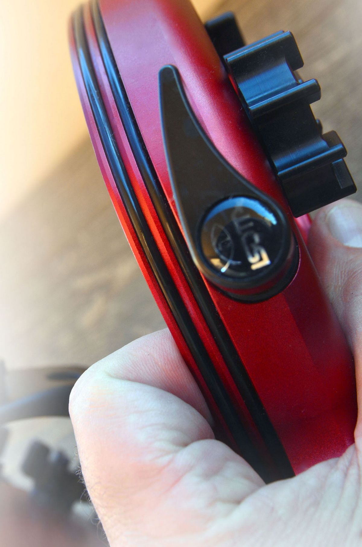 Una delle unicità delle custodie Isotta è la chiusura dei due elementi che compongono la conchiglia: la parte anteriore e la parte posteriore del tutto si fondono incernierandosi con due perni alla base, per l’incastro iniziale di un pezzo con l’altro; poi, con una chiusura a libro che termina al centro in alto, un nuovo perno accede a una manopola che ruotando in senso orario permette l’incastro definitivo e la chiusura.