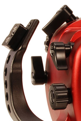 Tutti i comandi sono riportati all’esterno in modo manuale e i pulsanti studiati per un uso anche con i guanti, distanziati all’esterno in modo da evitare l’azionamento di comandi non desiderato. I simboli di lavoro sui comandi esterni sono identici a quelli dei comandi interni per un più intuitivo utilizzo anche per chi non ha preso ancora confidenza con la macchina; un ampio oblò posteriore permette una visione del display ottimale; è inoltre possibile inquadrare tramite un oculare esterno in linea con l’oculare della macchina; due fori M6 posti sotto lo scafandro offrono un punto di aggancio per l’applicazione di altri accessori (es. staffa per flash), lo stesso per un foro M8 e un foro M6 posti superiormente allo scafandro.