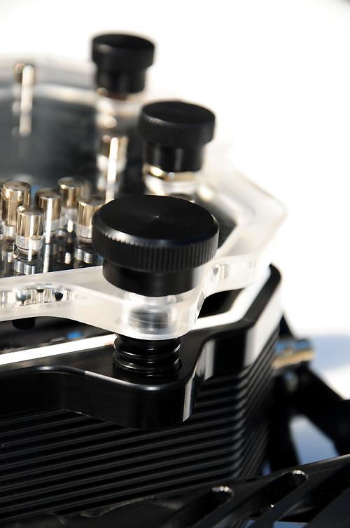 Particolare del sistema di chiusura a vite. Le viti laterali permettono una