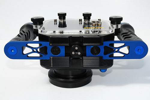 La custodia subacquea NIG15 vista dalla parte posteriore nella versione base