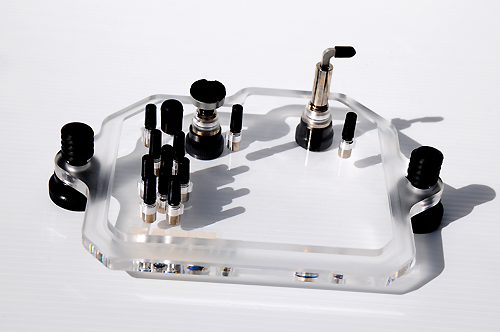 appositi blocchi in Delrin® e fissare velocemente le maniglie. Interessante la
