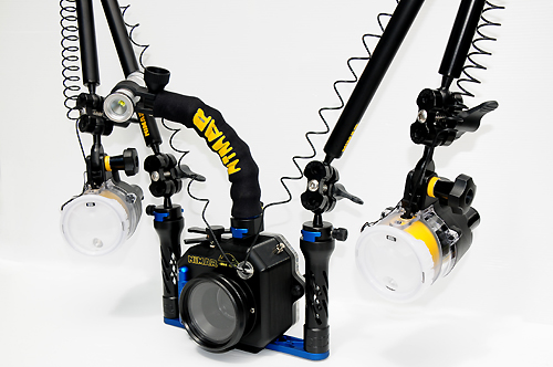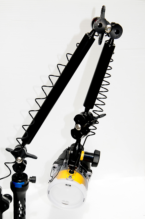 due braccetti in alluminio NiMAR e due flash esterni. I cavi in fibra ottica si