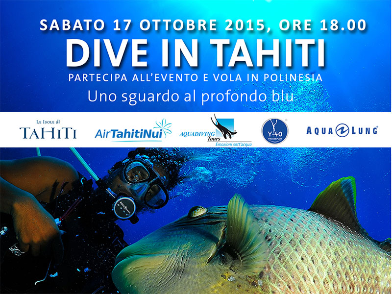 Tahiti Tourisme, in collaborazione con Air Tahiti Nui, Aqua Lung, Aquadiving Tours e Y-40 The Deep Joy, invita tutti gli appassionati di diving ed immersioni subacquee all’evento “Dive in Tahiti”, che si terrà sabato, 17 ottobre a partire dalle ore 18:00 presso Y-40 The Deep Joy a Montegrotto Terme (PD).