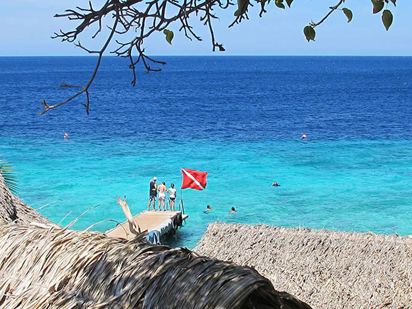 Tutta la costa ovest dell’isola è adatta alle immersioni. I siti censiti sono un centinaio, la maggior parte accessibili da riva. Sott’acqua i coralli si alternano alle enormi spugne, il fondale è ricchissimo di colori, i pesci abbondano e c’è spazio anche per qualche incontro macro, come gamberetti, cavallucci marini e rari nudibranchi. Il grosso pelagico è difficile da incontrare, a meno che non si scelga uno dei siti della costa est, dove però le immersioni sono riservate a sub esperti, e richiedono sempre una barca d’appoggio. Comunque tartarughe, tarpoon e barracuda si avvistano regolarmente anche nei siti più facili.