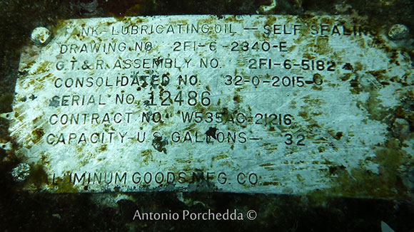 ancora presente sul relitto, saltata su uno dei serbatoio dell’olio dei motori.