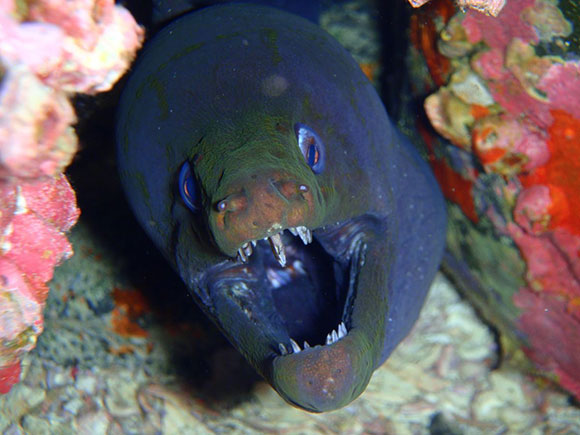 malcapitato subacqueo abbassa la luce della torcia. Uno spettacolo