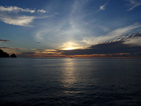 Il sole si tuffa nella scintillante distesa d’acqua per ben due volte e all’alba