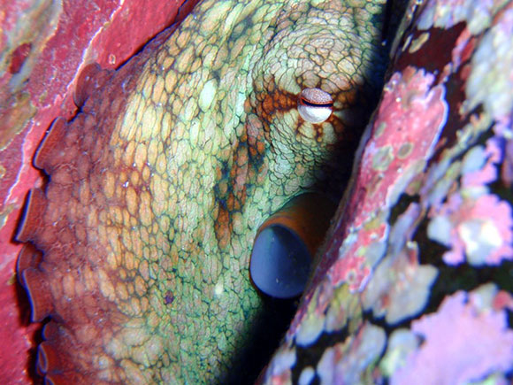 nugoli di dentici e grugnitori. Un polpo fuori tana allunga i tentacoli