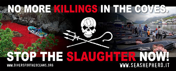 “NO MORE KILLING IN THE COVES, STOP THE SLAUGTHER NOW!”