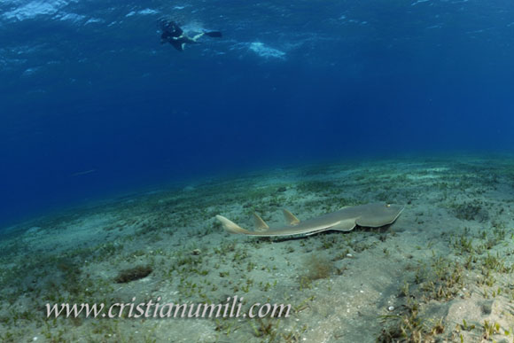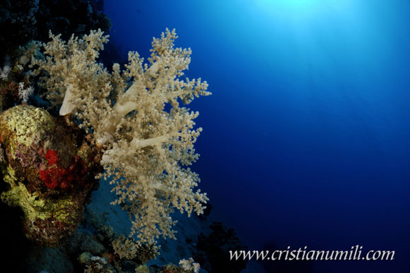 A nord la barriera è caratterizzata da molte spugne a tubo di grosse dimensioni, grandi branchi di pesci e qualche torpedine con poca voglia di farsi fotografare; anche in questo caso il percorso è avanti e indietro per la stessa parete corallina, il che comporta l’impossibilità di perdersi. Una volta usciti dalla baia la parete di corallo scende velocemente fino ad un finto pianoro di sabbia che invoglia l’esplorazione ma siamo già ad una profondità di circa 40 metri, e con i 12 litri si rischia di non avere molta aria per il rientro.