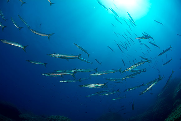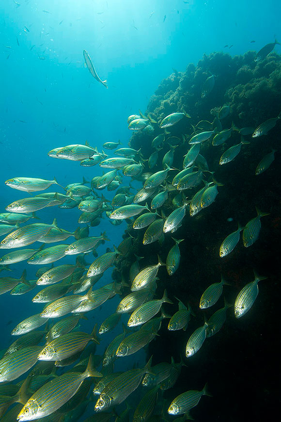momento in cui il banco di salpe “scende” dalla secca sullo sfondo.