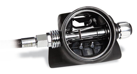 serie con una connessione DIN 300 bar ed è rifinito con una gradevole cromatura