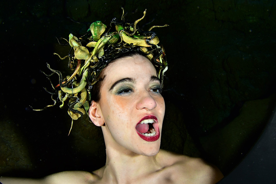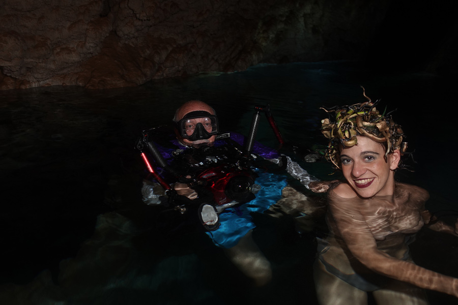 Nel 2022 Massimo e Gianni hanno iniziato a lavorare a un progetto inedito di foto creativa decisamente ambizioso. Fare delle foto subacquee a una modella ispirandosi a dipinti famosi. Dopo alcune prove in mare infruttuose, finalmente a inizio giugno di quest’anno i due sono riusciti a ottenere i risultati sperati trovando il set ideale nella famosa Grotta Giusti e di Monsummano – dove presso il Grotta Giusti Resort e SPA, si sono avvalsi della preziosa assistenza sott’acqua di Luciano Tanini del Grotta Giusti Diving. In Grotta Giusti sono state realizzate le foto più spettacolari: la Medusa di Michelangelo Merisi di Caravaggio, la ragazza con l’orecchino di perla di Johannes Vermeer, la creazione ispirata al grande Giuseppe Arcimboldo, la ragazza con la mela di Rene Magritte e l’uscita della modella dalla cornice di Pere Borrel del Caso. La Giuditta di Gustav Klimt è stata realizzata nei fondali della Liguria con l’assistenza di Luca Smecca del Diving Group Portofino.
