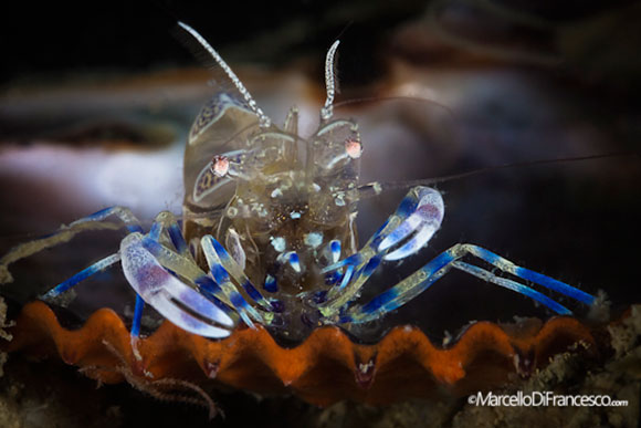 Un bel esemplare di Periclimenes amethysteus posa di fronte al nostro obbiettivo da 100mm – Numana – F 22 1/200 iso 200