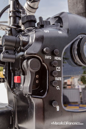 Veniamo alla gestione della macchina in immersione, anche qui Nauticam in questi anni ha segnato il passo, prevedendo per le sue custodie la possibilità di accedere a tutti i comandi principali della fotocamera tramite pulsanti e leve ergonomiche posizionati proprio sotto i pollici nel momento in cui si impugnano le due maniglie.