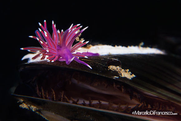 Grande esemplare di Dondice banyulensis, un nudibranco endemico del nostro mar mediterraneo. Argentario – Porto Santo Stefano – Canon 100mm – F22 1/200 iso 200