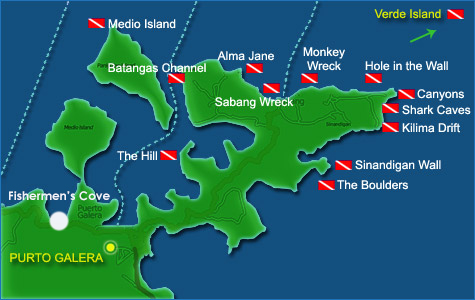 Quattrocento e rotti anni dopo questo terribile porto per galeotti è una tra le più popolari destinazioni subacquee con cinque chilometri tutt’attorno alla propaggine che si estende nel Passage. Il motivo sta nell’ampio spettro di cibo per gli animali marini che con il tempo hanno confermato qui la loro residenza, proliferandosi, richiamando altri, cibo loro stessi, fino a formare la lunga catena della vita dove il grande si pappa il piccolo. E così via. Tra tra acque di poca profondità o i fondali di Verde Island si trovano razze e specie tropicali, ampie spianate di sabbia, coralli molli e duri, i tradizionali pesci tropicali se non addirittura megattere, squali, pesce pelagico.