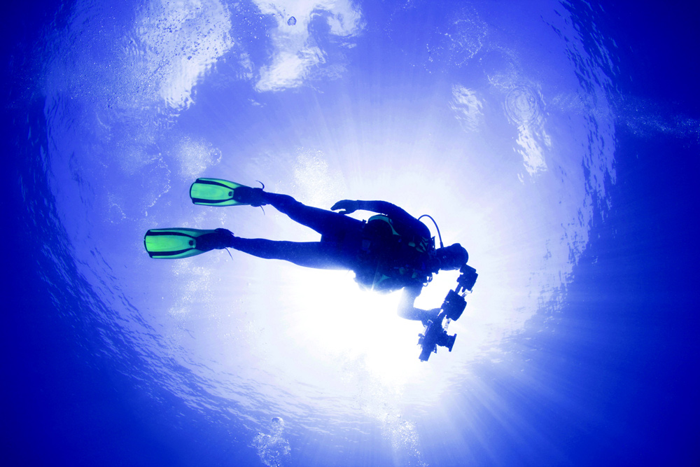 Sott’acqua possiamo operare a luce ambiente oppure avvalerci di lampeggiatori, in questo caso, dato l’ampio angolo di campo da illuminare, è preferibile impiegarne due, con bracci lunghi per allontanare i Flash e tenerli arretrati rispetto alla fotocamera; in determinati casi e per situazioni particolari, può essere impiegato anche un solo Flash.