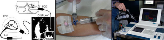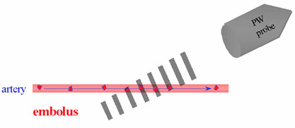 Il doppler transcranico rileva , tramite l’analisi spettrale dell’onda velocitometrica e con un apposito software, il passaggio di microemboli nel circolo cerebrale, dimostrando quindi indirettamente che il filtro polmonare non li ha fermati ( e quindi vi è una comunicazione fra la circolazione ematica destra e sinistra ).